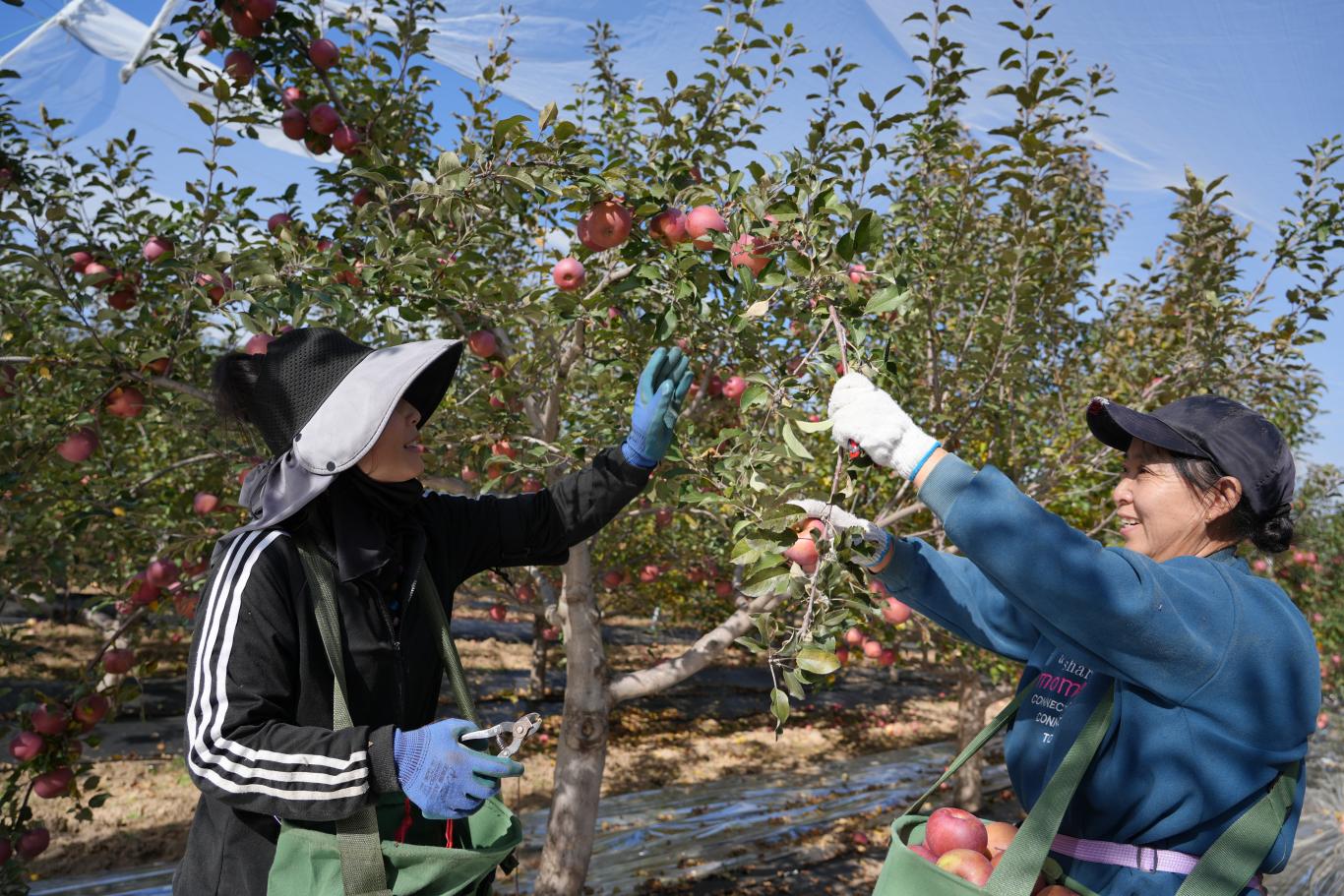 “本年全挂果,亩产5000斤,毛收入有望打破300万元!”农场负责人张彩红嗓门洪亮,指着地里的反光膜算起账,“幸亏农业部门给方针、送技能,防雹网、反光膜都安排上了,苹果上色匀、品相好。现在嘎啦、长富2号正采摘,现已收了20多亩。”谈及出售,她胸中有数:“眼下市场价稍低,先存进冷库,等行情好了发往上海、广州——咱的苹果质量硬,南边消吃力强,肯定能卖上好价钱!”